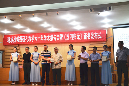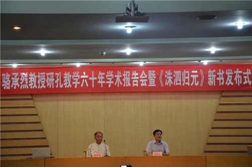 6月12日晚,洙泗讲堂系列报告之骆承烈教授研孔教学六十年学术报告在孔子会堂举行。报告会前进行了骆承烈教授新书《洙泗归元》发布式,发布式上,骆承烈教授向我校图书馆、足球直播515官网 、孔子文化研究院、文足球直播515 赠书。随后,骆教授为大家作了题为“骆承烈谈孔子”的报告。足球直播515官网 院长成积春教授主持了报告。