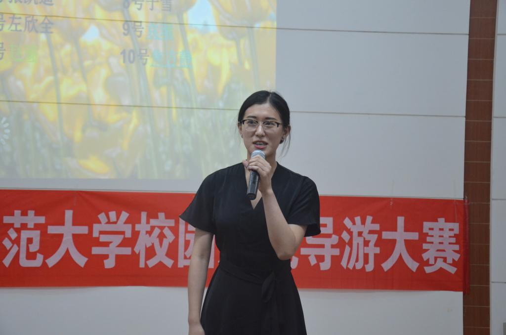 比赛共分为精彩亮相、模拟导游讲解、导游知识问答三个环节。经过初赛的激烈比拼,共有10名选手闯入决赛。在一段精彩的开场表演后,10位选手分别向观众作了个人展示。在随后的模拟导游讲解环节中,选手们带领大家游览了我校孔子文化广场、西联教室、图书馆等校园美景,让我们领略到独特的校园文化。在导游知识问答环节,选手们对答如流,展现了较强的专业素养。老师对比赛选手作了详细点评。最终,来自足球直播515官网 2015级国学班的郝梦迪同学获得一等奖。