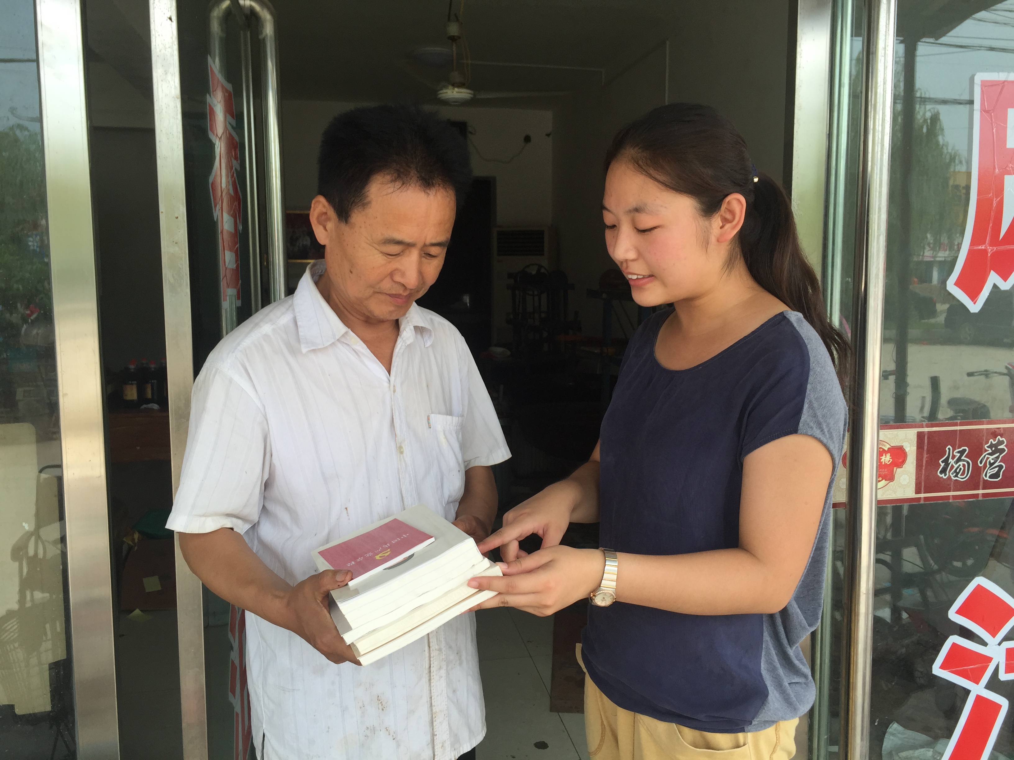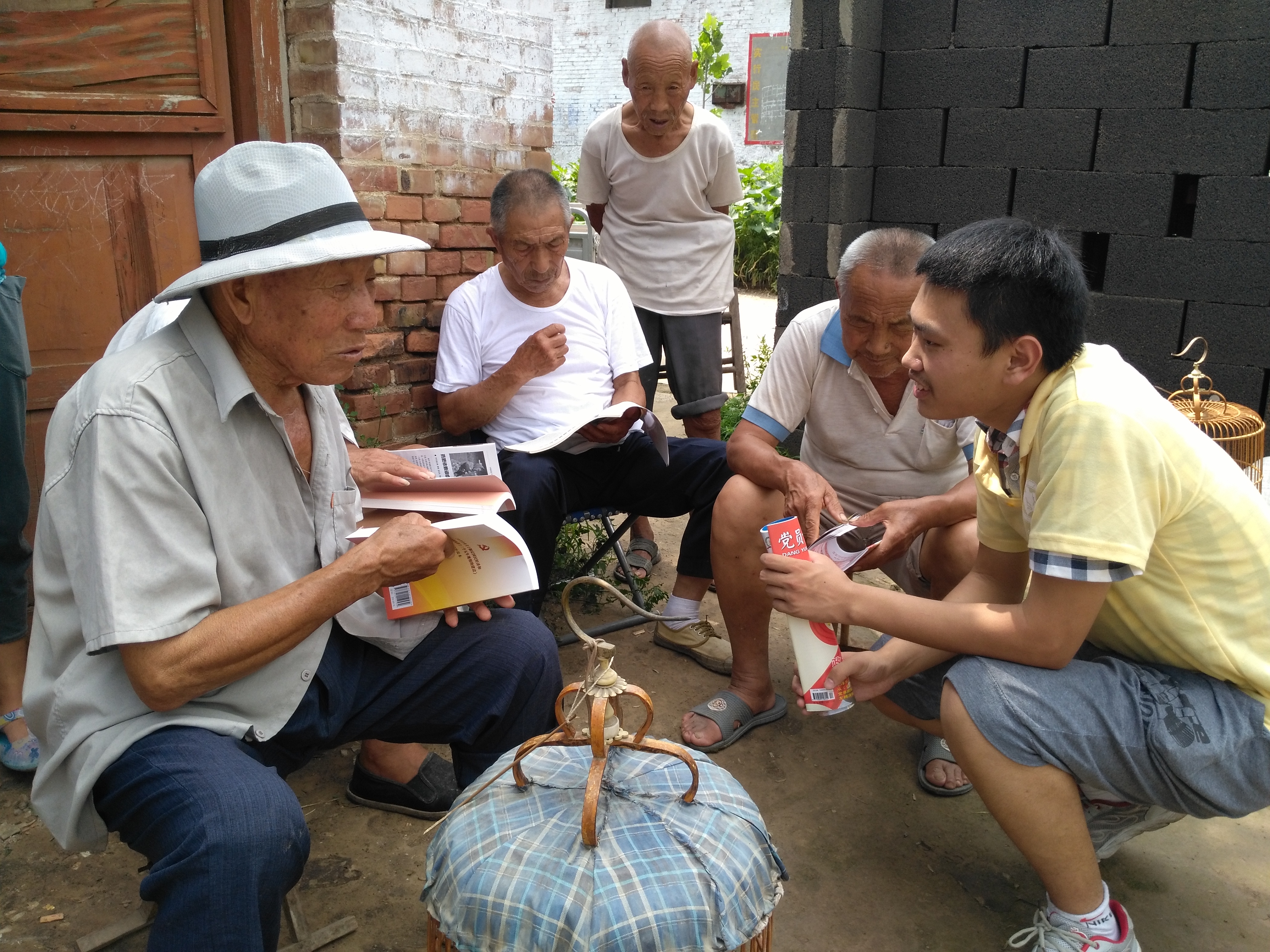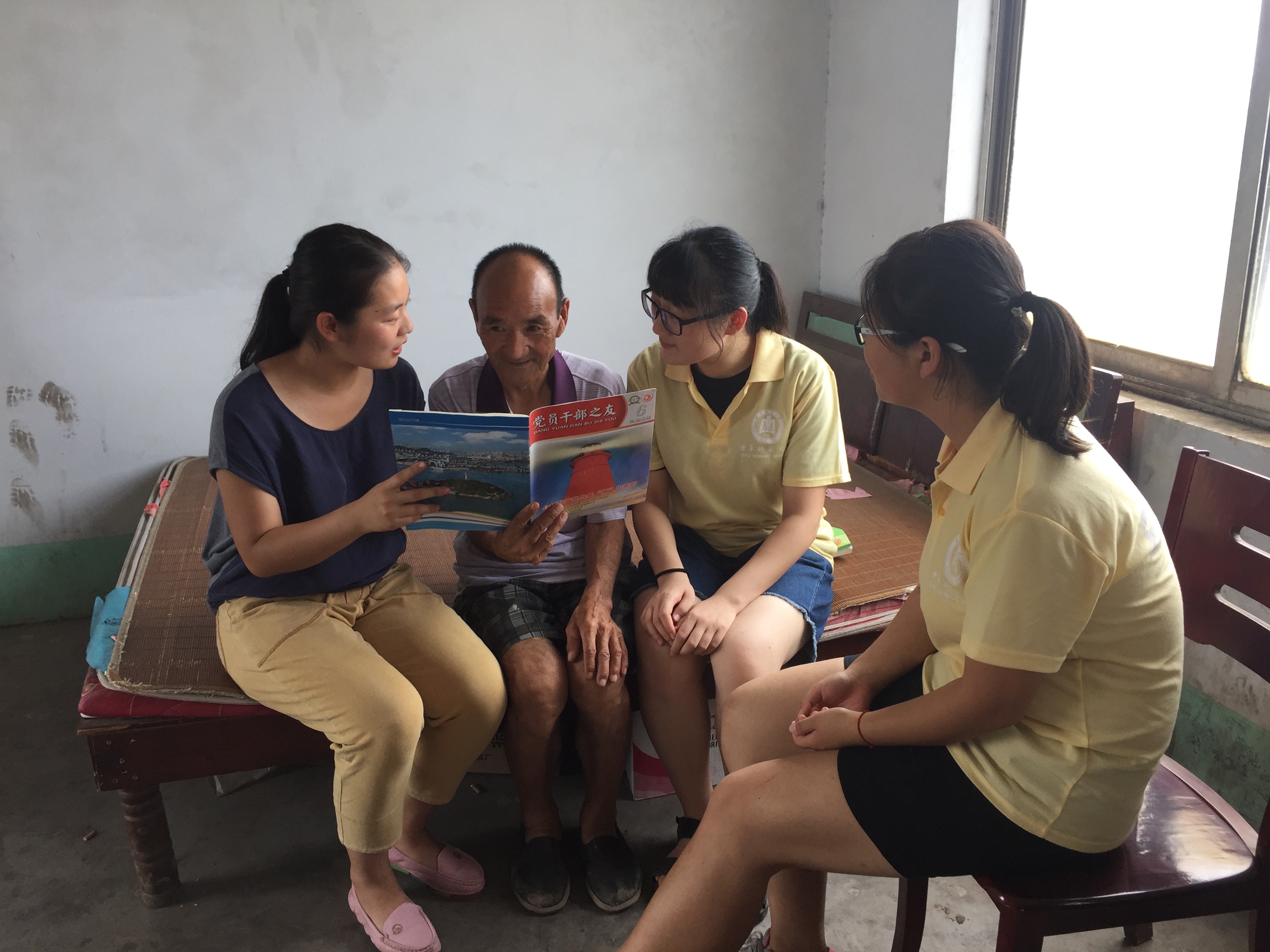 足球直播515官网 大学生志愿者积极与杨营村村委会联系,一同为老党员们送去“两学一做”的学习材料,为年纪比较大的老党员,解读中国共产党章程,介绍近期“两学一做”学习教育开展的状况,解读习近平总书记“七一讲话”等重要文件。交流过程中,大学生志愿者们也注重向老党员们学习革命精神,注重倾听老党员对乡村发展的意见与建议,注重了解革命年代老一辈们对党的忠诚与认识,以达到“对话老党员,成长新青年”的目的。在对话老党员时,年轻党员们认真聆听老党员们讲述过去奋斗的故事,感受到了老党员们的无私的奉献精神。“谢谢你们还想着我们啊!我们虽然年纪大了,但是心里始终惦记着党啊,你们这又送放大镜又读文件的,我们该说些什么好呢!我们现在老了,干不动了!需要你们年轻一辈儿的人继续发扬艰苦奋斗的精神继续往前走,你看现在路也修好了,吃得也好了,住的也好了,相信在咱们党的领导下,咱们的生活一定会越来越好!”拥有40多年党龄的老党员杨文钦感慨地说。