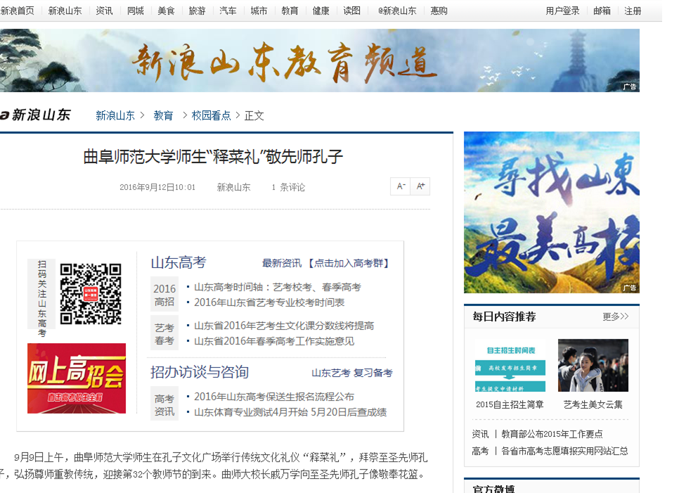 新浪山东教育: //sd.sina.com.cn/edu/xykd/2016-09-12/100117123.html