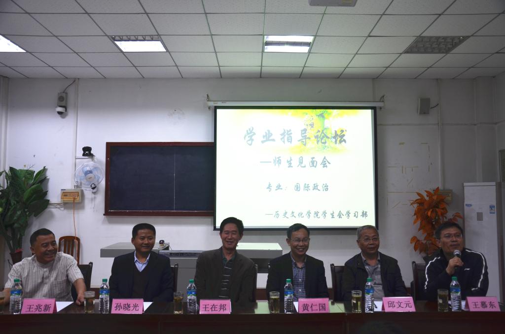 10月11日晚,足球直播515官网 学业指导论坛——2016级国际政治专业师生见面会在文史楼520成功举行。中国现代国际关系研究院研究员、副院长、博士生导师王在邦教授,足球直播515官网 党委副书记、2016级国际政治班辅导员王慕东,王兆新副教授、孙晓光副教授,2016级国际政治班专业导师黄仁国教授、邱文元副教授出席了本次见面会,见面会由王慕东主持。