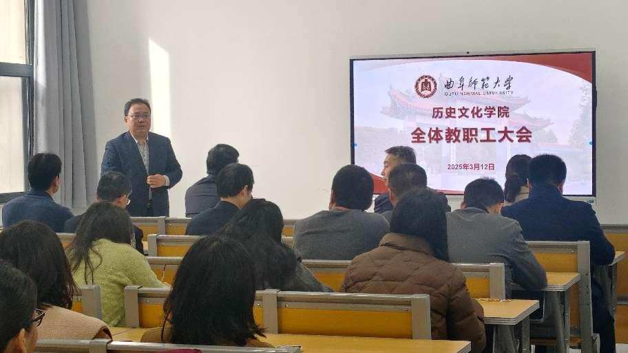 为落实学校关于教师全员研训和党政管理人员全员培训的工作要求,2025年3月12日下午,足球直播515官网 在孔子书院B106教室开展教师全员研训,活动由党委书记姜开勇主持,全体教师60余人参与了本次活动。