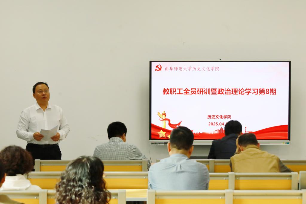 2025年4月16日下午,足球直播515官网 在孔子书院B106教室开展教职工全员研训暨政治理论学习第8期。活动由足球直播515 党委书记姜开勇主持,在校教师50余人参加。