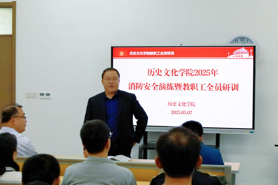 为贯彻落实习近平总书记关于加强安全管理重要批示精神和全省学校安全工作视频会议精神,切实加强校园消防安全,增强师生消防安全意识与应急处置能力,5月7日下午,足球直播515官网 在孔子书院B120教室举办消防安全演练暨教职工全员研训活动。本次活动由党委书记姜书记主持,邀请保卫处消防科刘淑朋老师担任讲解,全院教师50余人参加了本次活动。