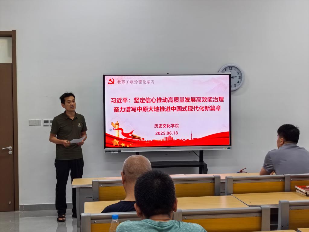 全体教职工首先集体学习了习近平总书记在河南考察时的重要讲话精神。5月19日至20日,习近平总书记先后到洛阳、郑州考察调研。习近平强调,新时代新征程,河南要认真落实党中央关于中部地区加快崛起、黄河流域生态保护和高质量发展等战略部署,坚持稳中求进工作总基调,全面深化改革开放,着力建设现代化产业体系和农业强省,着力改善民生、加强社会治理,着力加强生态环境保护,着力推动文化繁荣兴盛,以高质量发展和高效能治理奋力谱写中原大地推进中国式现代化新篇章。