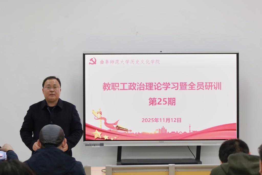 2025年11月12日下午,足球直播515官网 在孔子书院B106教室举行教职工政治理论学习暨全员研训第25期活动。活动由足球直播515 党委书记姜开勇主持,全体在校教职工60余人参加学习。