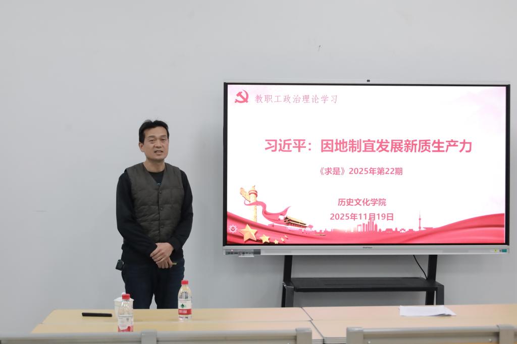 全体教师首先进行政治理论学习。本次学习的内容是11月16日出版的第22期《求是》杂志发表的中共中央总书记、国家主席、中央军委主席习近平的重要文章《因地制宜发展新质生产力》。由党委学习委员孙锋领学。这是习近平总书记2023年9月至2025年4月期间有关重要论述的节录。文章强调,新质生产力是创新起主导作用,摆脱传统经济增长方式、生产力发展路径,具有高科技、高效能、高质量特征,符合新发展理念的先进生产力质态。它由技术革命性突破、生产要素创新性配置、产业深度转型升级而催生,以劳动者、劳动资料、劳动对象及其优化组合的跃升为基本内涵,以全要素生产率大幅提升为核心标志,特点是创新,关键在质优,本质是先进生产力。文章指出,科技创新和产业创新,是发展新质生产力的基本路径。要坚决破除影响和制约高质量发展的体制机制弊端,完善与新质生产力更相适应的生产关系。文章强调,“十五五”时期,必须把因地制宜发展新质生产力摆在更加突出的战略位置,以科技创新为引领、以实体经济为根基,加快建设现代化产业体系。