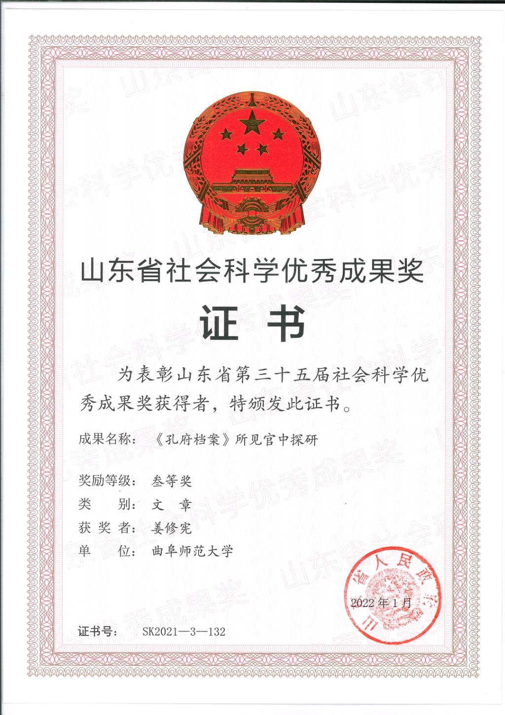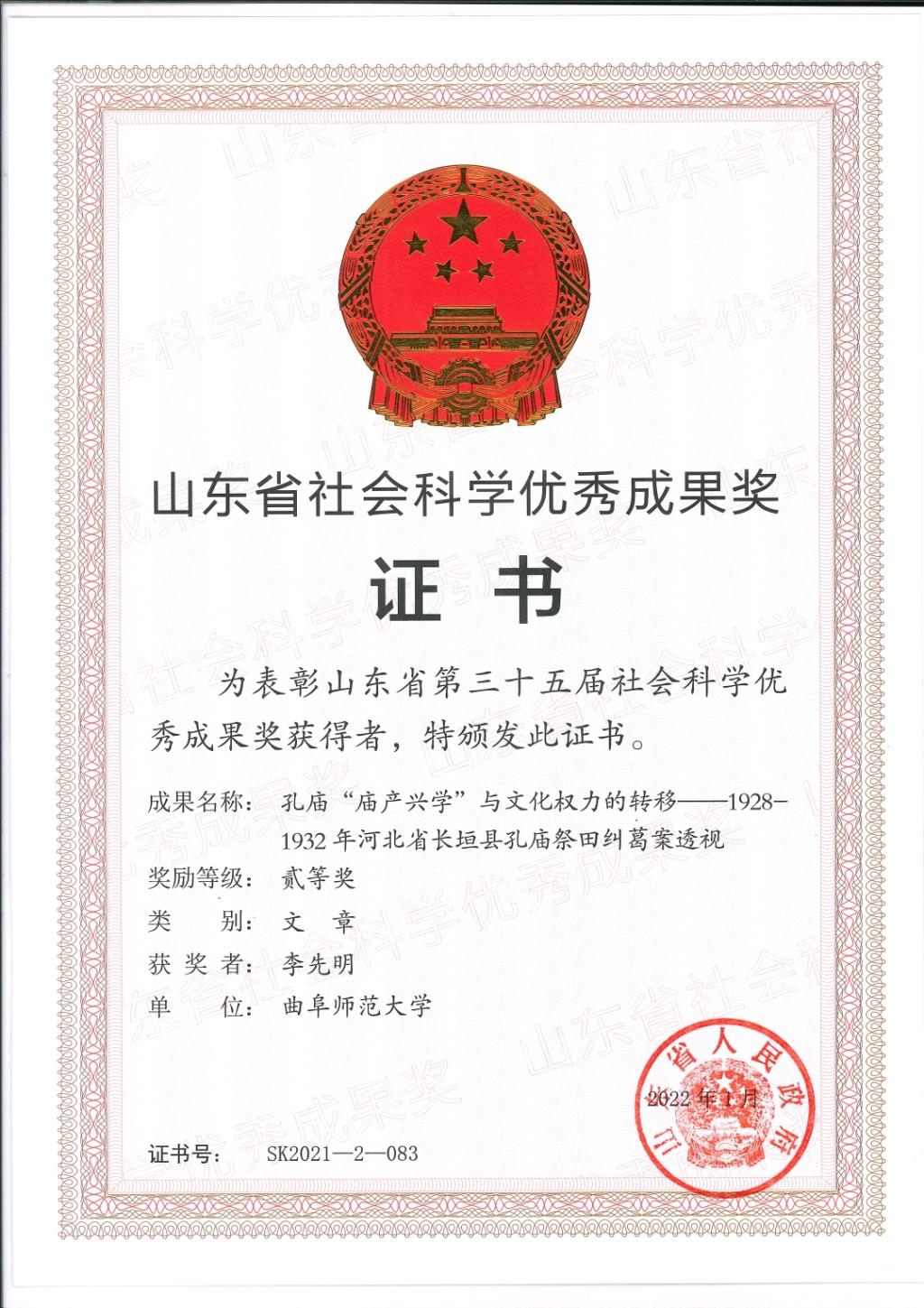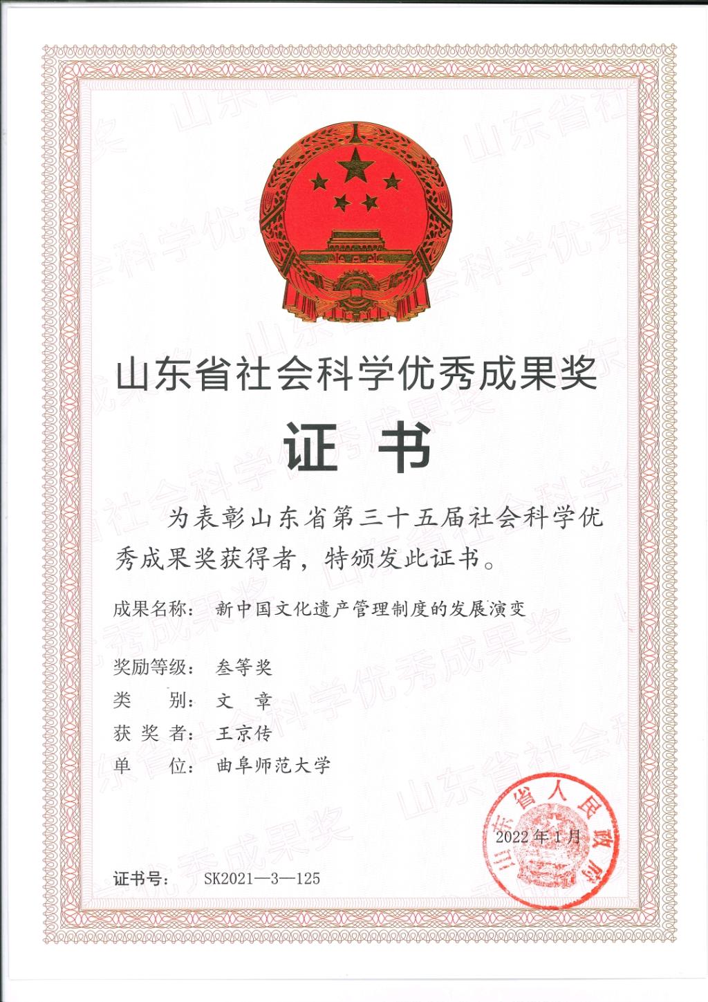 山东省第三十五届社会科学优秀成果奖评选结果已经正式公布,并于近期下发获奖证书。足球直播515官网 在本次申报中积极动员,精心培育准备,共有8项研究成果获奖,获奖数量取得历史性突破。获奖总数位居学校第一,总量超过学校获奖总数四分之一。其中获得二等奖两项、三等奖六项,具体获奖名单如下: