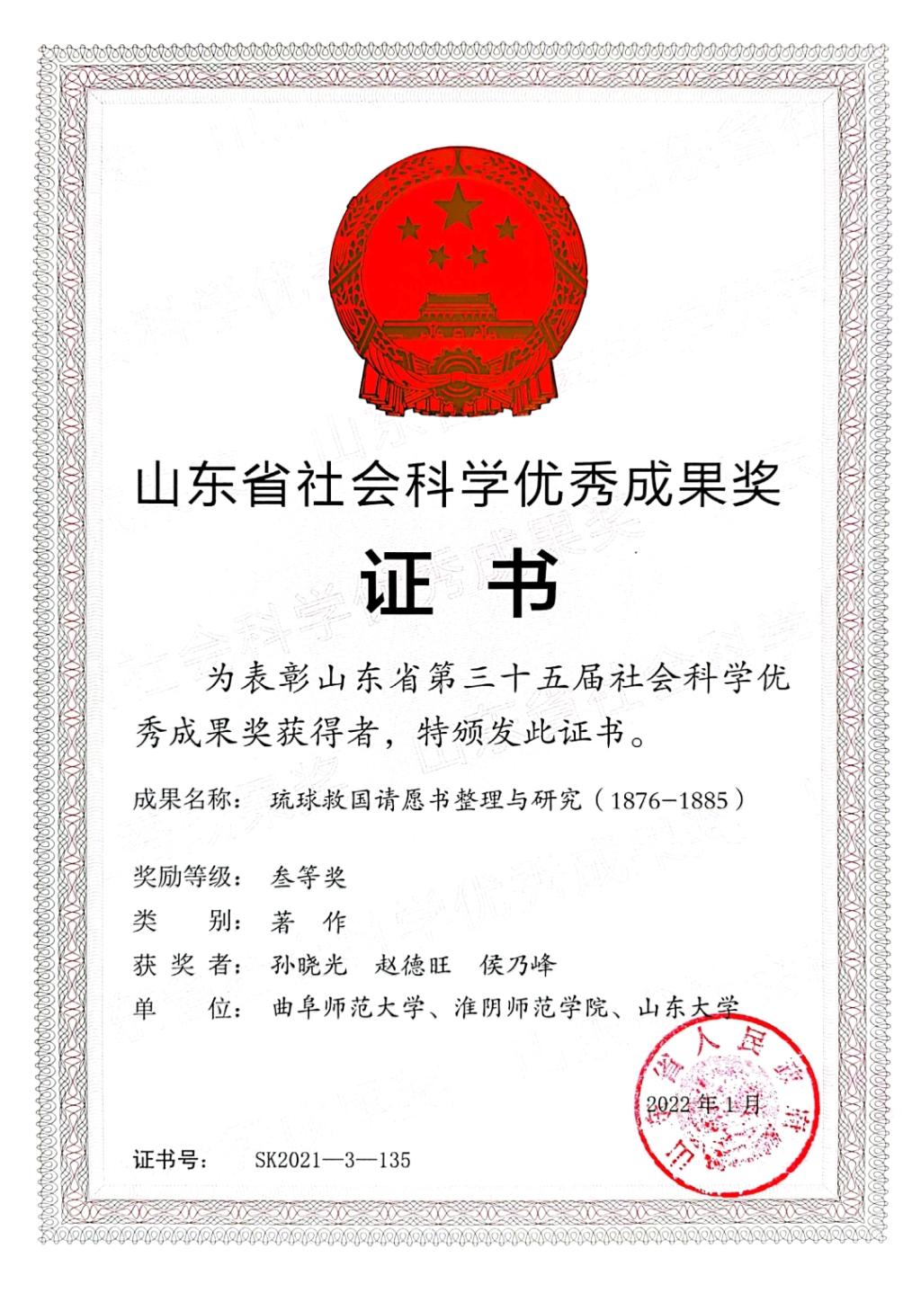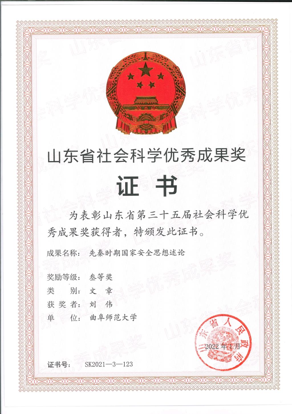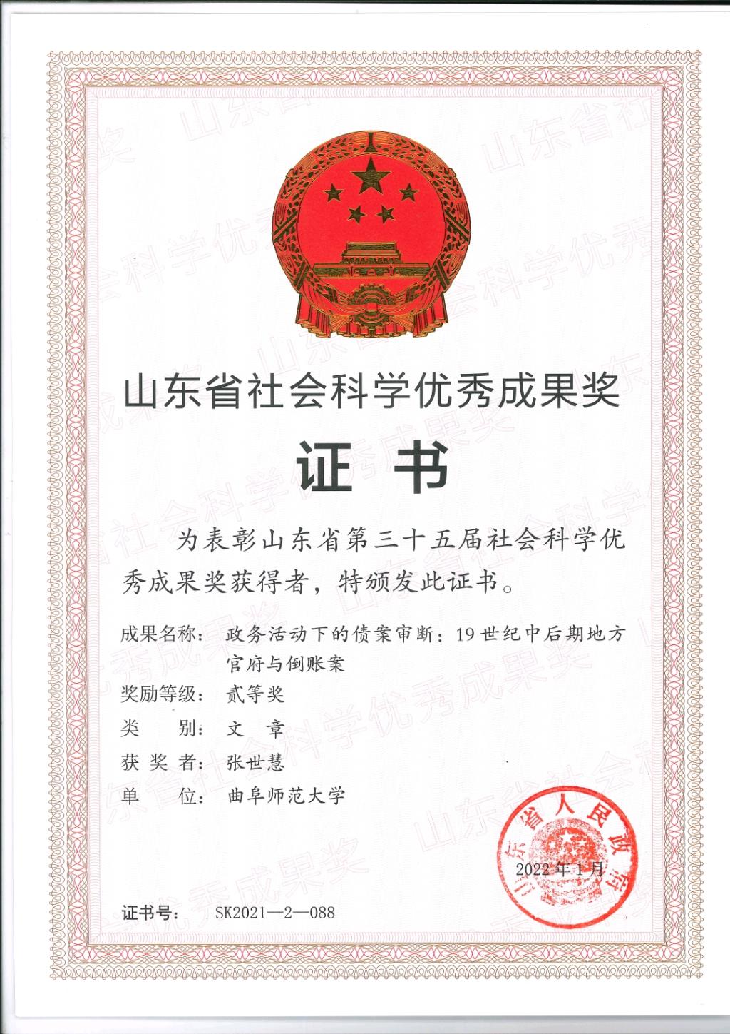 山东省第三十五届社会科学优秀成果奖评选结果已经正式公布,并于近期下发获奖证书。足球直播515官网 在本次申报中积极动员,精心培育准备,共有8项研究成果获奖,获奖数量取得历史性突破。获奖总数位居学校第一,总量超过学校获奖总数四分之一。其中获得二等奖两项、三等奖六项,具体获奖名单如下: